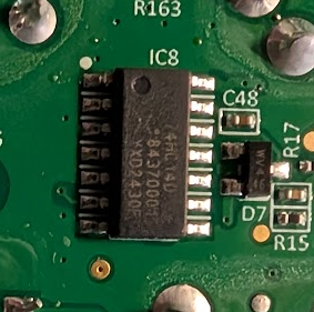 - 74HC14D - a hex inverter with Schmitt trigger inputs, probably used to interface between 3.3V and 5V levels